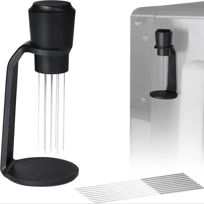 A wire distribution tool (WDT) helps break up clumps in your coffee puck before tamping. This promotes even water flow through the coffee, ensuring optimal extraction and flavor.